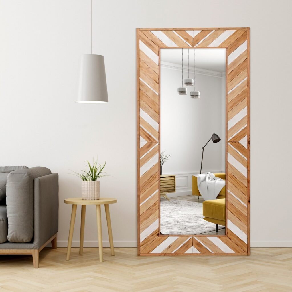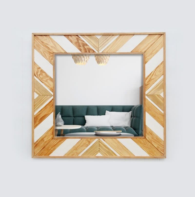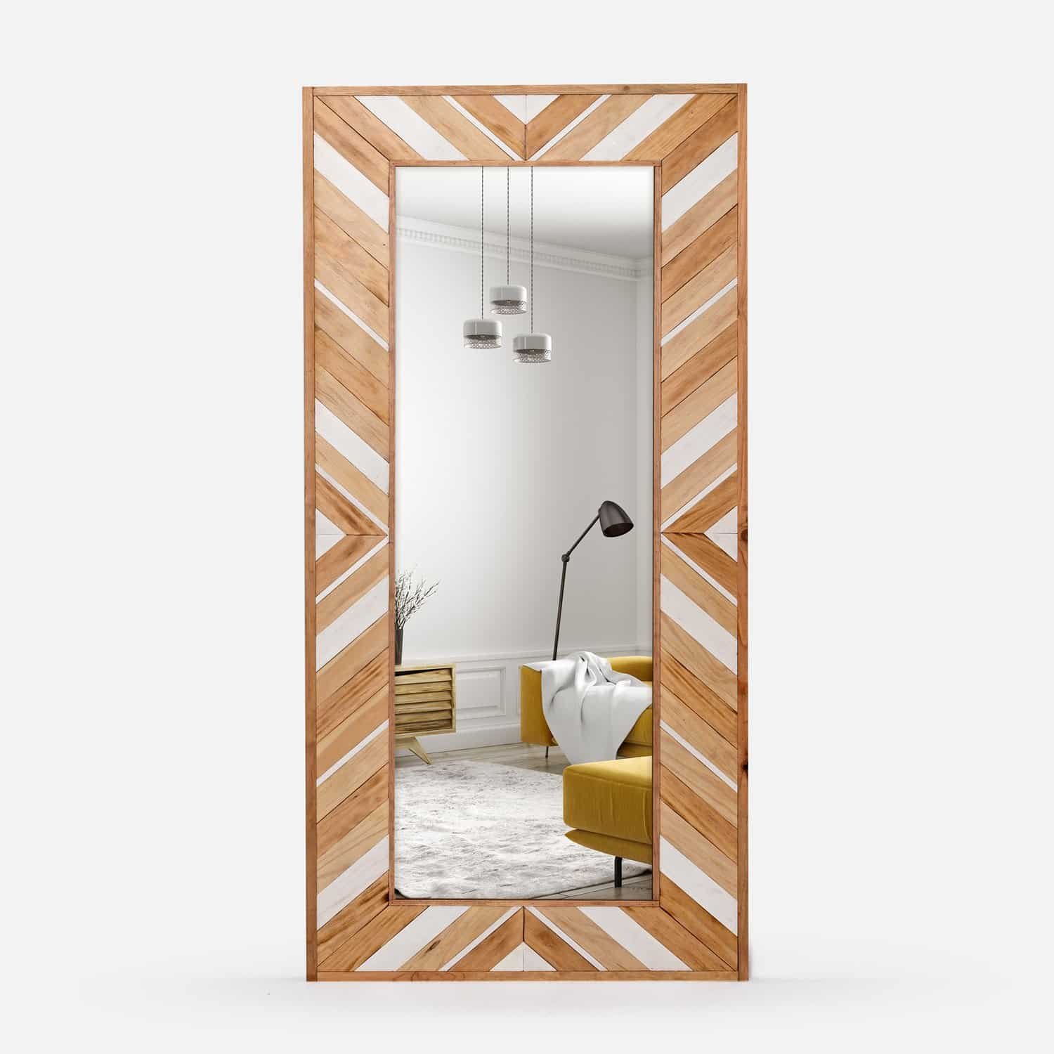 Espejo elaborado con madera silvestre de pino y castaño, pigmentos y tintes 100% naturales, de colores claros y neutros.