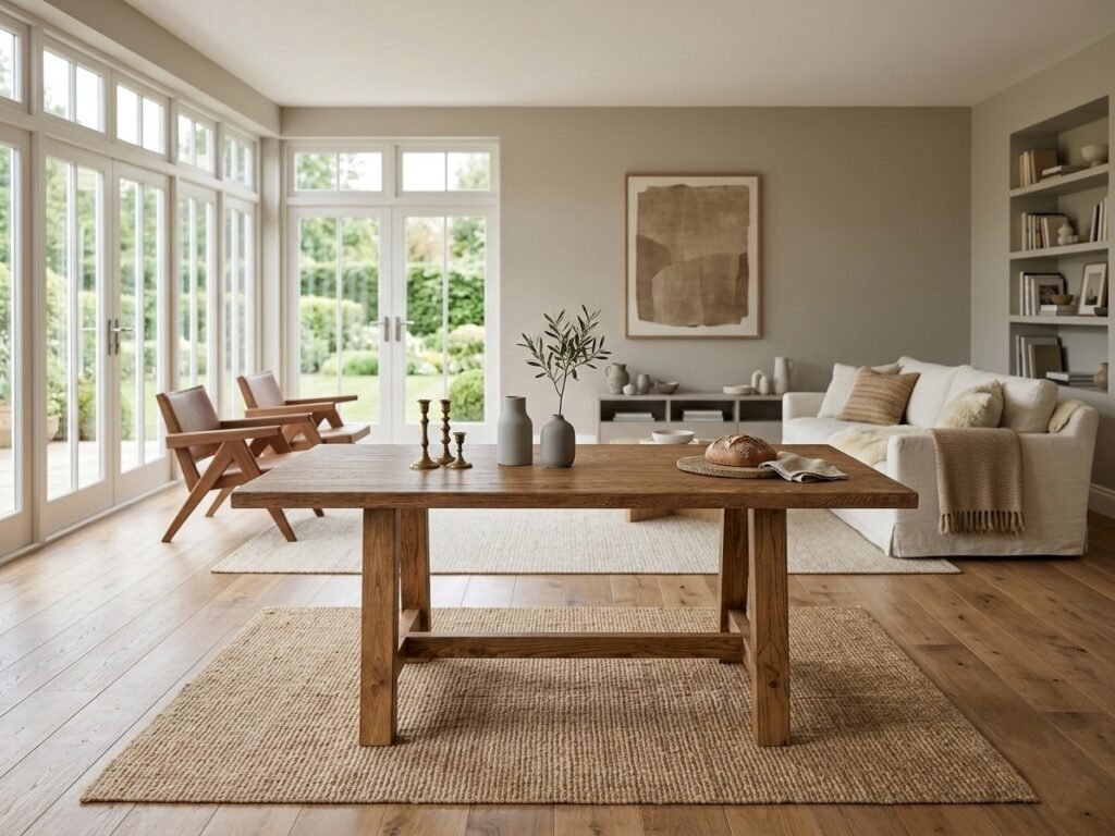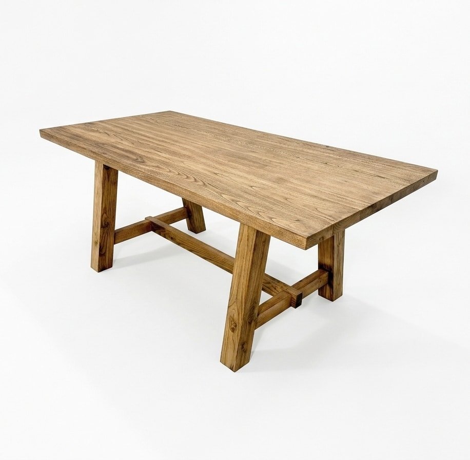 Mesa artesanal de madera de castaño natural, elaborada a mano con madera procedente de Hervás. Su diseño robusto y elegante resalta la belleza de las vetas naturales, ofreciendo una pieza única, resistente y pensada para acompañarte durante toda la vida.